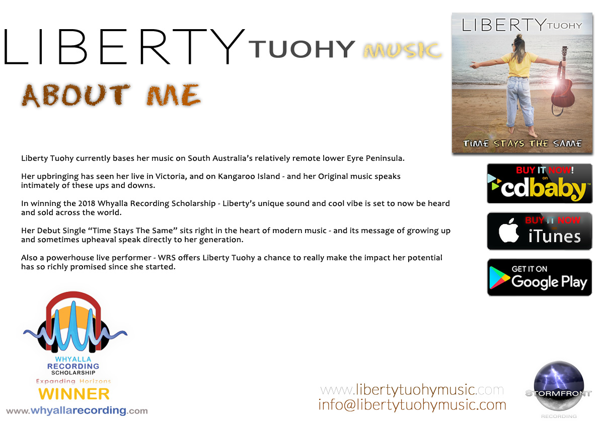 Email Liberty! Liberty online! GET IT on Google Play! BUY IT NOW on iTunes! BUY NOW on CD Baby! Learn about WRS! Visit Stormfront Productions! Liberty Tuohy Music